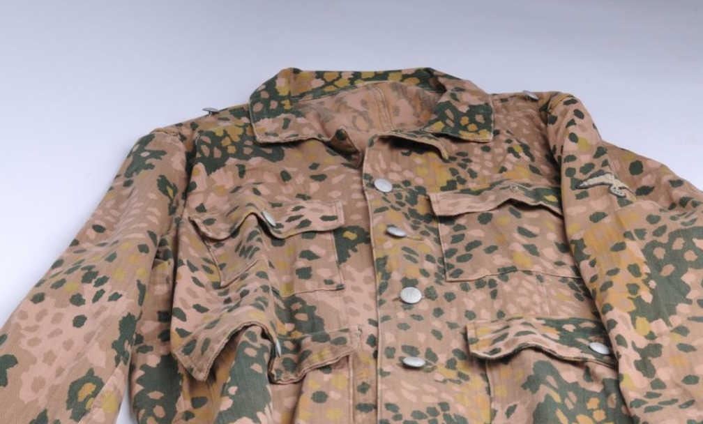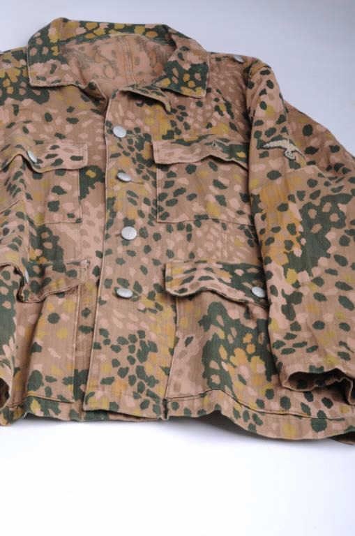 German 44 Dot Waffen SS Type II M 42 three quarter length Tunic with shoulder patch on left sleeve in overall fine condition. Accompanied by a Letter of Originality from our consignor stating this piece to be a war time souvenir purchasedfrom Mr. Charles R. Miller of South Philadelphia. In summary, the letter further indicates our consignor obtained this Tunic from Veteran Miller in January of 2002. Miller told our consignor that he was attached to the 7th Armored Division which was heavily engaged in the Ardennes Offensive in December ’44 to March ’45 of the Battle of the Bulge against the 17th SS Panzergrenadier Division Gotz von Berlichingten. Also included is a summary sheet of information on the 17th SSPanzergrenadier Division including reference to its link to the 1st Panzer Division and its notoriety for involvement in the Malmedy Massacre. A very rare German WW II Tunic in fine condition. Est.: $2,800-$5,600.