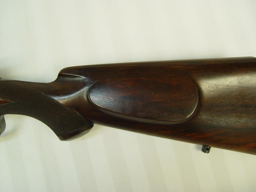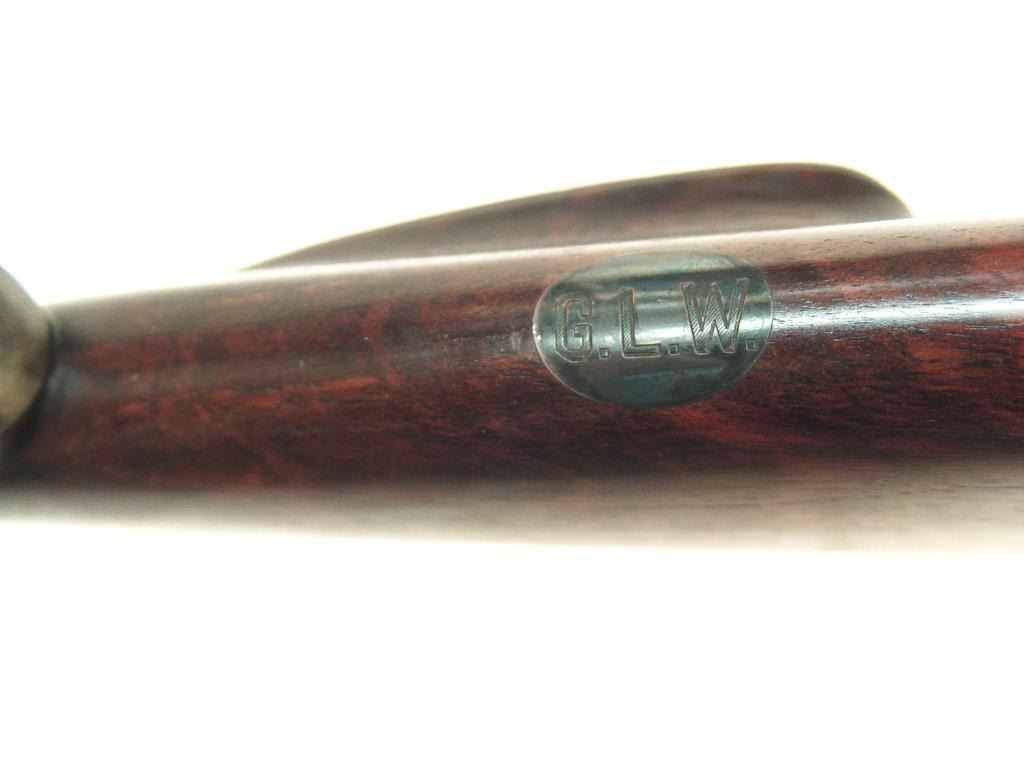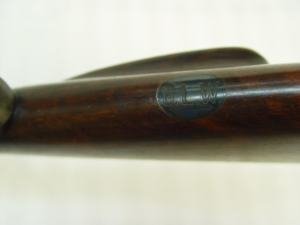 High grade custom rifle on a Mauser action by “Griffin & Howe, Inc., New York, No. 35 in .300 Mag. (H&H). Plaque inlaid into the belly of the stock engraved in block letters “G.L.W. and originally made for “Capt. G.L. Wotkyns, OrdnanceDept., U.S. Army” who was a pioneer of wildcat cartridges and aided in the development and improvement of the .22 Hornet. See lot 238 for another G&H rifle which descended in the collection of Fred Huntington of R.C.B.S. whoobtained the captains arms in the 1950s. Included with this lot is a treasure trove of letters to Wotkyns and from Wotkyns to most of the significant firearms experts of the 1920s and 30s. Townsend Whelan, Elmer Keith, Sedgley, Knoble,Remington, and a letter dated 1944 to Huntington. Also a photo Wotkyns in the 1920s examining German artillery sight with letter to Huntington from the photographer dated 1956. This rifle shows a 25” barrel of slightly heavy weight, crispcheckered strait grain walnut stock with horn fore end cap, milled steel butt plate with trap for 2 cartridges and bore cleaner (Still present), Lyman receiver sight, and mounted for hook type sling swivels. The condition is very good plus to near