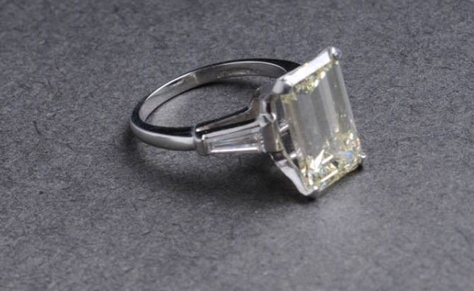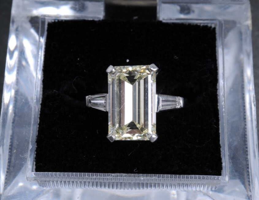 Lot 238a Ladies Platinum and Diamond Ring featuring one 5.08 ct Emerald cut Solitaire Diamond (est. weight-