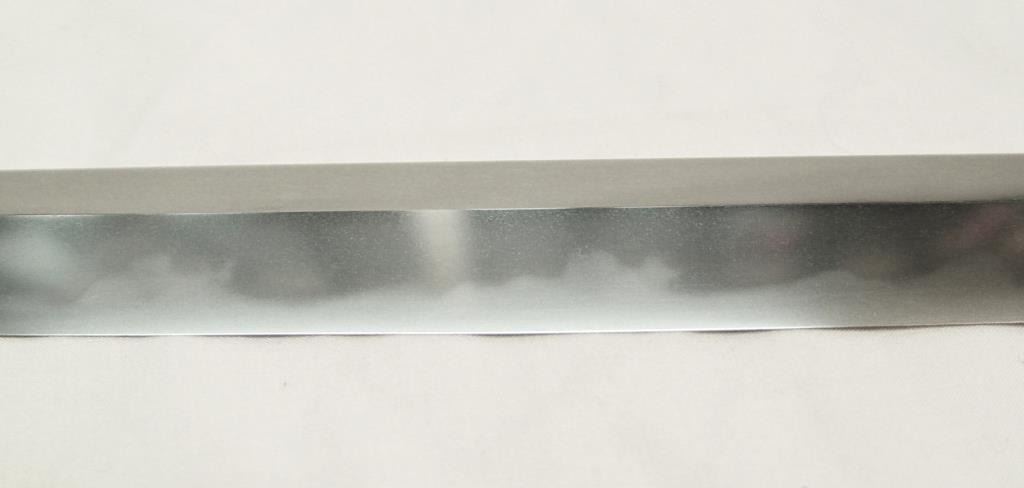 A Superb Shinto Hizen Tachi Signed Hizen Saga ju Masahiro and Dated. The signature has been pronounced genuine by the noted authority Robert Benson and is here guaranteed to be the work of the great Shinto master, sho dai (firstgeneration) Masahiro. The blade is in virtually mint condition having been little polished and is free of flaws. The temper line is characteristic 1st Masahiro of midare with ash, yo, sunagashi, and kinsuji. The length is a perfect 28 and 3/8inches from tip to the base notch. The tang is ubu (unaltered) with one hole and is pristine with the lovely russet color from nearly 400 years of careful preservation. The blade is wide and without defect and retains a splendid 19th century polish which reveals all the beauty present in this fantastic sword. The Saga signature is rare and highly desirable making this blade an excellent candidate for Juyo shinsa following which the value would be in the six figures. It is only the second almost perfect Japanese sword the cataloger has seen in 50 years the other being a Juyo Muramasa belonging to the Indonesian billionaire, Yani Haryanto. A lesser 1st generation Masahiro with a 27 and 3/8th inch blade