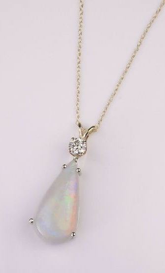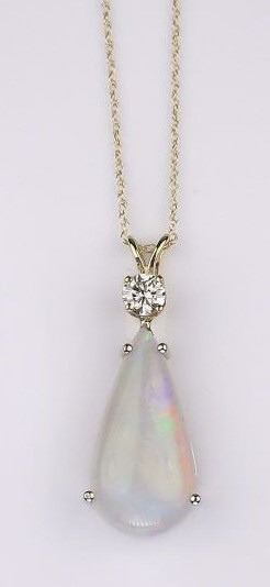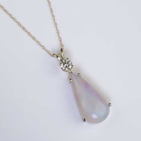 Opal weighing approx. 5.00 carats and side ‘IDEAL’ cut diamond weighing approx. 0.25 carats of H-I color and SI clarity set in 14 karat yellow gold custom setting. Retail $1,500-$2,000 Estimates $1,000-$1,500