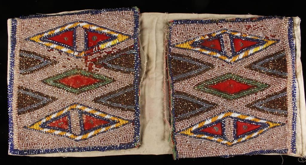 Crow beaded Saddle Throw with compartments. Very fancy, 12" x 51" from Lamers Trading Post Hardin, Montana, Provenance Butterfield's San Francisco. Est:$1,500-3,000
