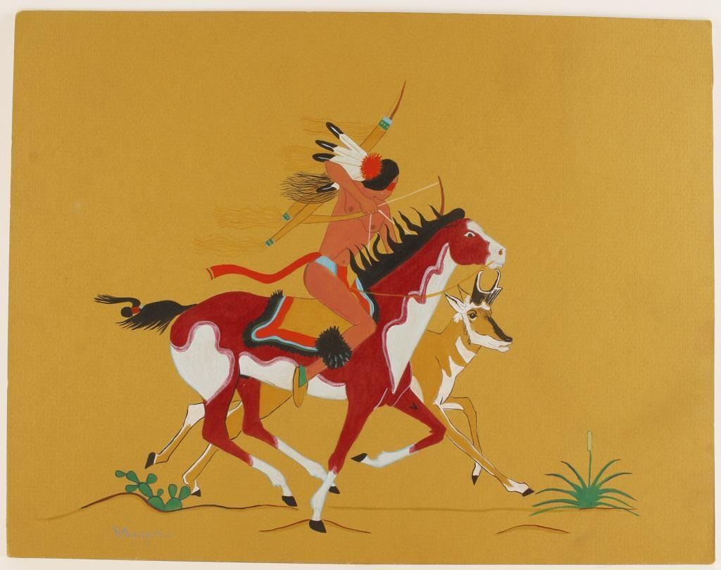 Lot 281 Important Original Watercolor on board by Noted Native American Artist Stephen Mopope. 14" x 11",