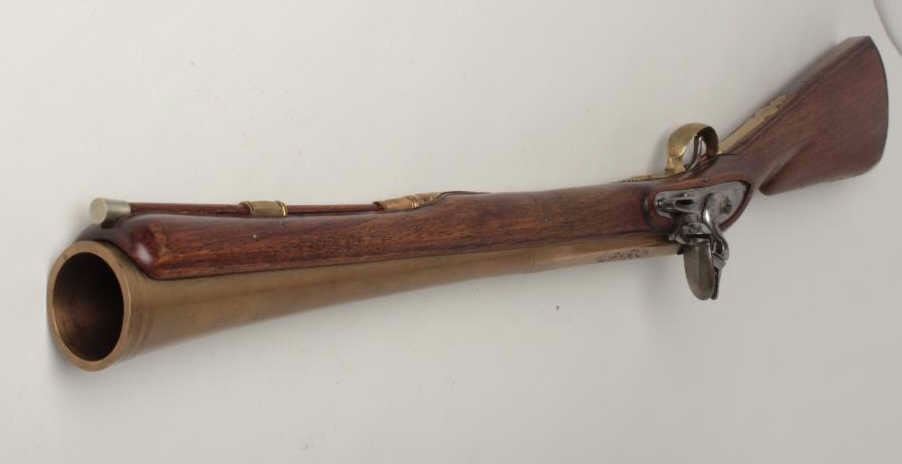 Lot 295 Belgian Flintlock Blunderbuss 1 5/8" bore diameter at flared muzzle, 19 3/8" round to octagonal br