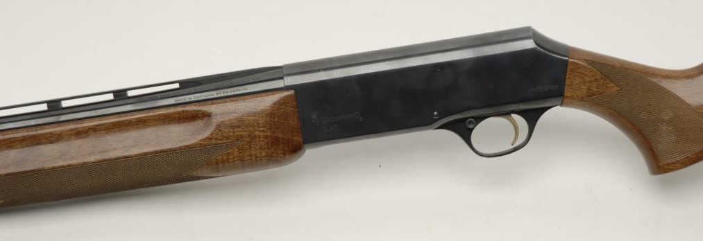 Browning Model B-80 semi-automatic shotgun, 12 gauge, serial #411PZ07186. The shotgun is in very good overall condition with a 28” barrel. The barrel retains nearly all of its high gloss blue finish with a full-length ventilated rib, Improved choke and steel bead front sight. The receiver shows small marks from use but otherwise retains nearly all of its blued finish, with a single trigger. The finely checkered wood stocks are in very good condition with a nice high gloss finishand small marks consistent with storage. The butt stock ends with a Browning marked rubber butt pad and a 14 ½” LOP. The bore is very good, the action crisp and the markings are sharp. (Modern). Est.: $500-$1,000.