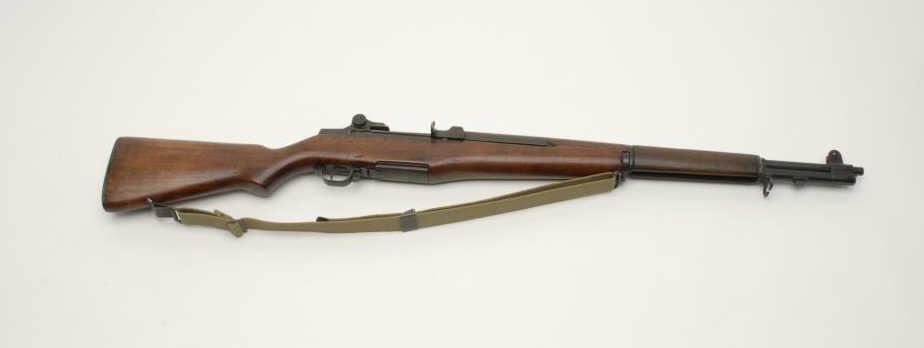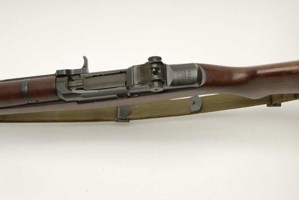 U.S. M1 Garand semi-automatic rifle by Springfield Armory, .30-06 caliber, 24” SA barrel dated 6-42, S/N 529449, military finish, excellent bore, crisp action, sharp markings, wood stock in good overall condition; olive green woven sling. Allparts are correct for this rifle with the exception of the stock which has a square P proof. British proofs under the operating rod on the barrel. (C&R). Est.: $600-$1,200.