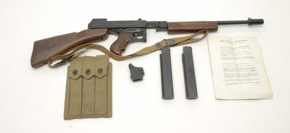 Auto Ordinance Corp Model 1927 A3 semi-automatic rifle, .22LR caliber, S/N T770, blued finish, wood is replaced with surplus GI wood; with sling; in overall very good condition. With a total of 2 stick 10-round magazines and woven magazine pouchand instructions manual, all in a black carry case. (Modern). Est.: $600-$1,200.