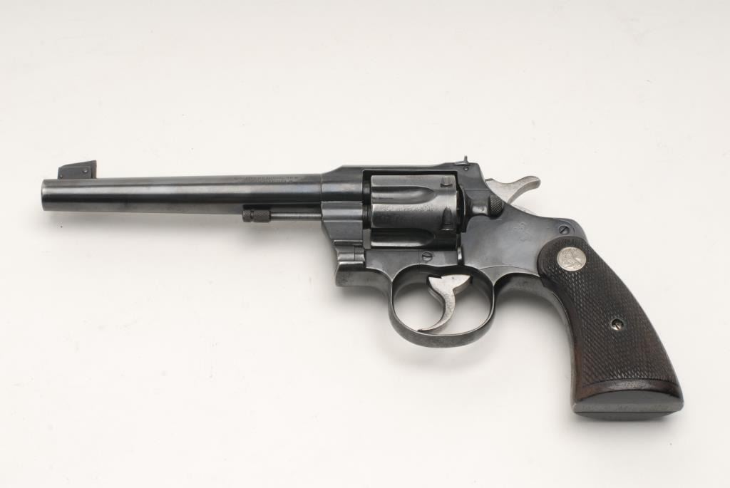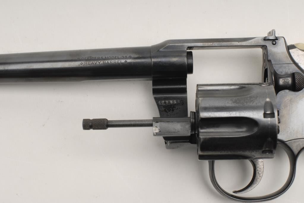 Lot 332 Colt Officer’s Model flat top target DA revolver, .38 caliber, 6” heavy barrel, adjustable sights,