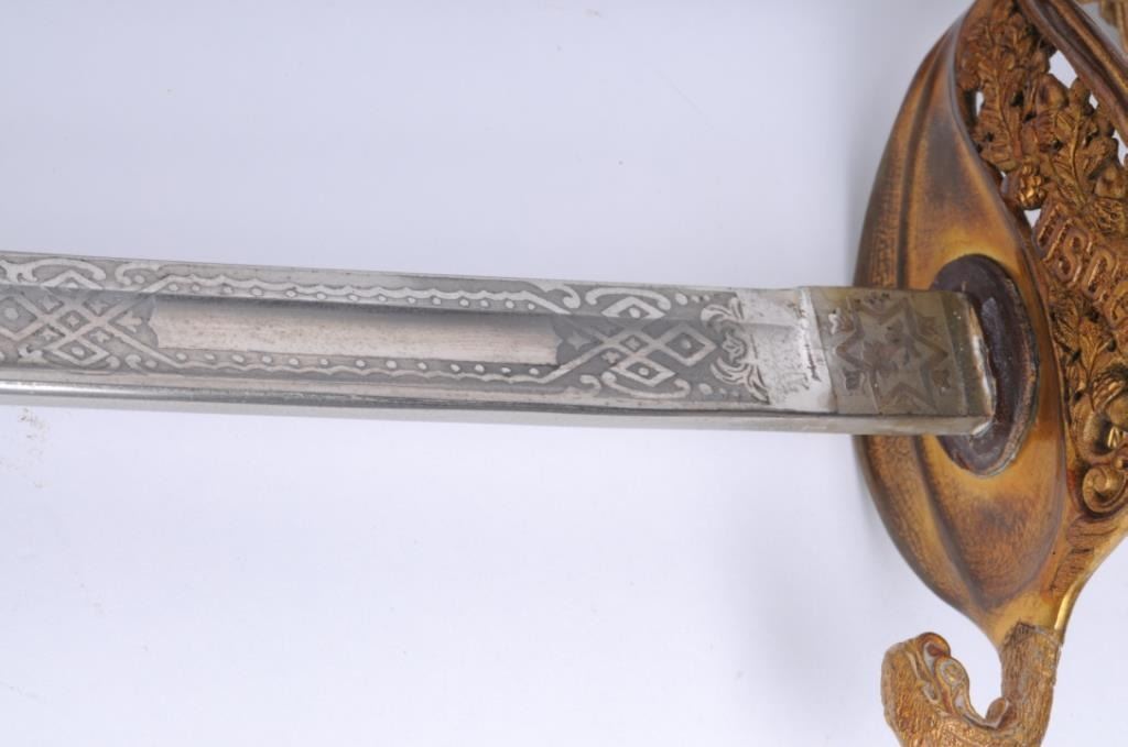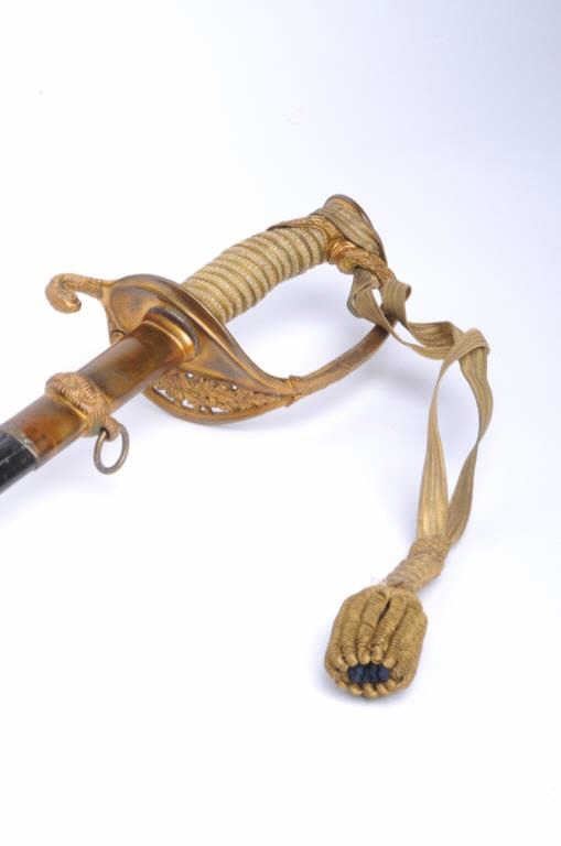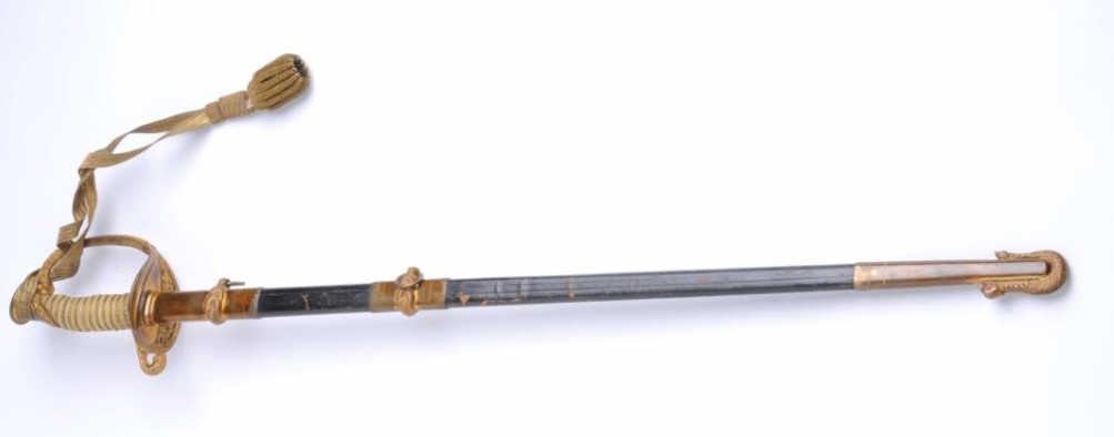 Lot 350a U.S. Coast Guard sword and brass mounted leather scabbard by McLilley & Co., Columbus, Ohio, in ov