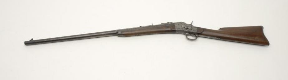 Remington Rolling Block #1 Sporting Rifle in 50-70 cal. #3771, with Factory Special Ordered 1/2 round, 1/2 octagon barrel, extra sight on barrel. # marked 50CTE-"E" on underside of barrel, near in serial number to Custer's. Very scarce in thecaliber and especially in this barrel. Excellent to Near Mint Bore. Est:$3,500-7,000