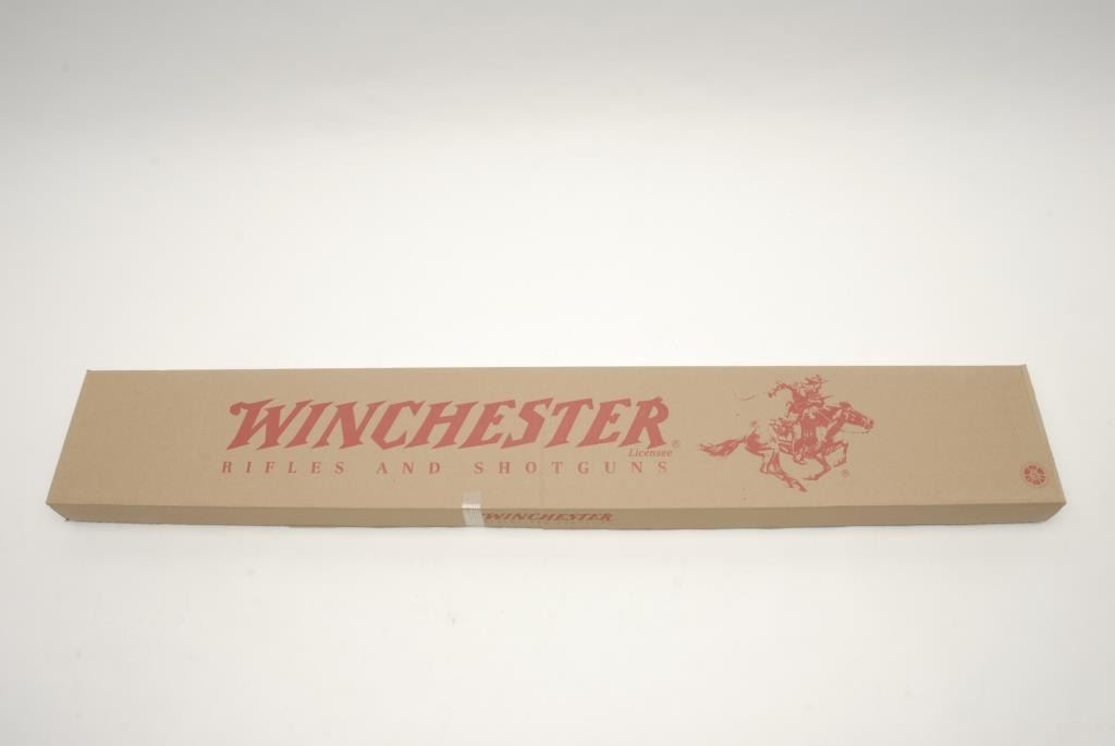 Winchester 94 Legacy Lever Action Rifle, .38-55 caliber, 26” round barrel, blue and case colored, checkered wood pistol grip stock and fore end, special factory tang sight and safety, S/N 6570584. This rifle is in like new conditionshowing little handling and no use. Original box and manual included. This rifle is one of the last from the New Haven, CT plant that closed in 2006. (Modern) Est.: $500-$1000