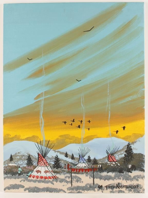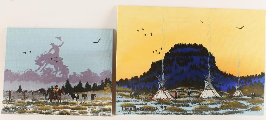 Lot 416 Collection of 5 original oil paintings on canvas by Fred Nightwalker. 8x10" and 12x16". Values to