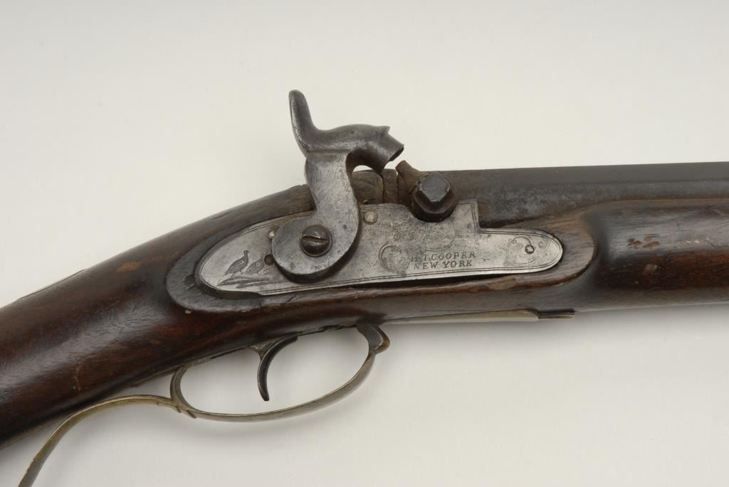 Cooper N.Y. lock single barrel fowler converted from flintlock to percussion with a 35” barrel and 50” overall. In fair to good condition. (Antique) Est.: $250-$500