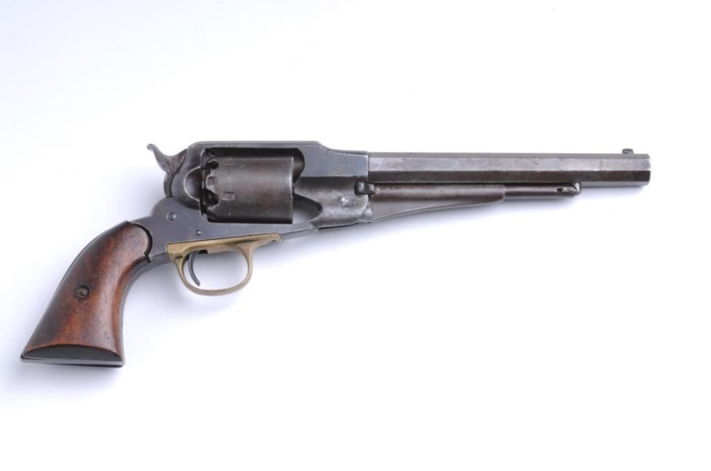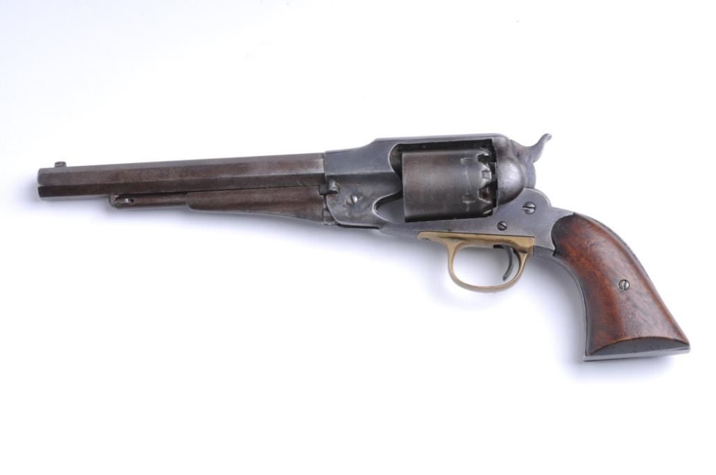 Lot 436 1858 Remington .44 caliber percussion revolver, S/N 92260 showing a brown patina with traces of bl