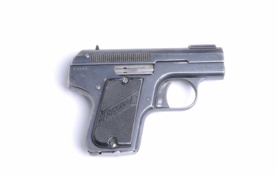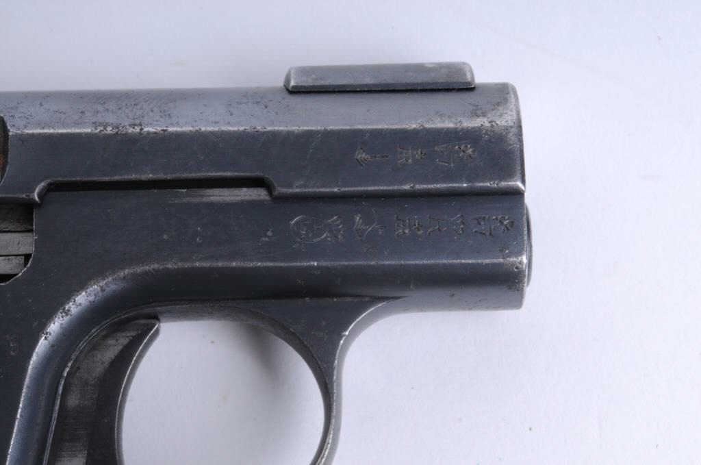 Lot 471 Pieper, Henri & Nicolas, Bayard Model, #57300. 7.65/.32 semi-auto, bore is pitted but fair. 2.5” b