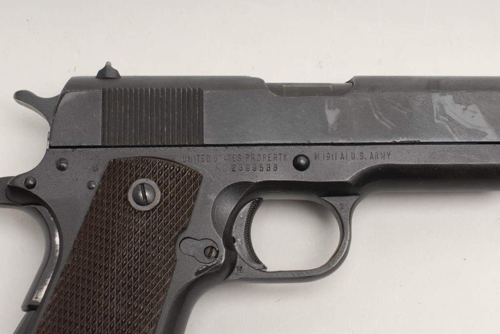 Lot 521 U.S. Property Model 1911-A1 semi-automatic pistol by Ithaca, .45 caliber, 5” barrel, S/N 2399538, i