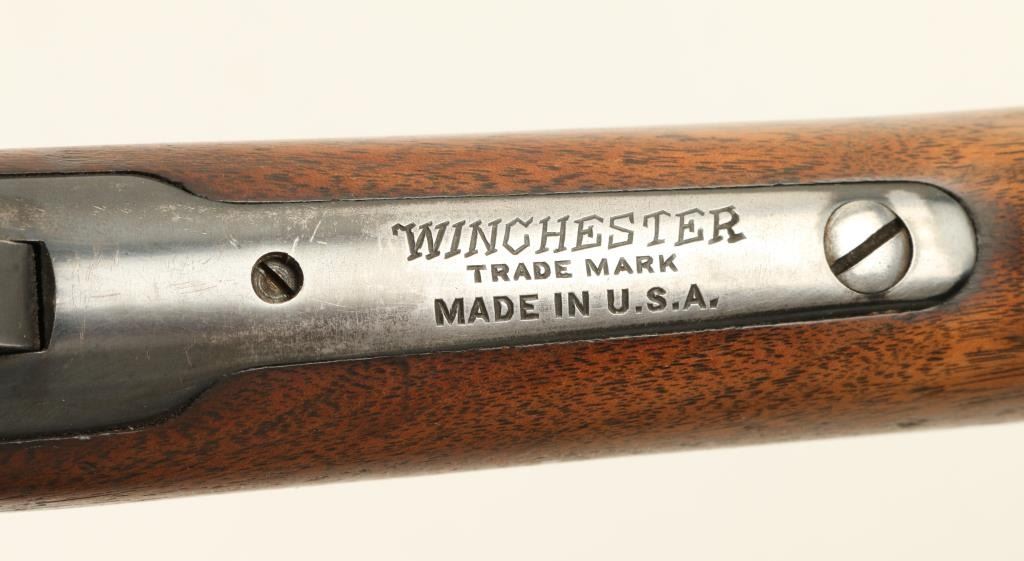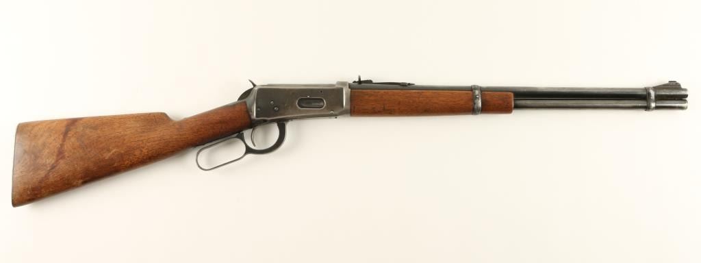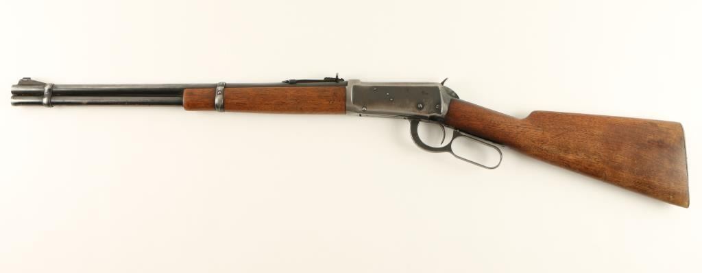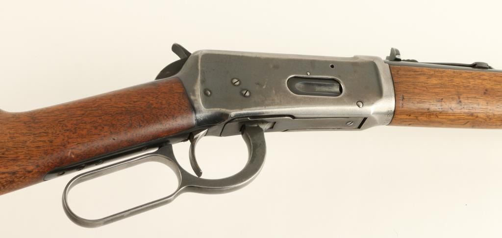 Winchester Model 94 lever action carbine, .32 W.S. caliber, 20” barrel, S/N 1301376, blued finish, wood stocks in overall very good condition showing considerable original blue finish to metal surfaces, very good bore, crisp action, sharpmarkings and very good wood stock with normal minor mars from carry and storage. (C&R). Est.: $500-$1,000.