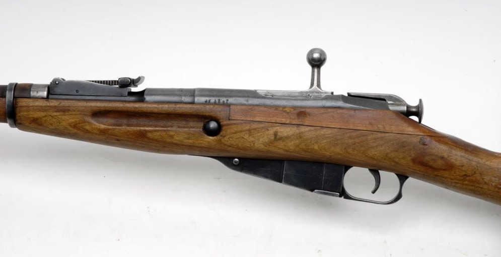 Russian Mosin Nagant bolt action rifle, import-marked, 7.62mm caliber, 29.5” barrel, S/N 3897, missing cleaning rod, military blue finish, wood stock in overall fair to good condition with a bore that should clean to good, crisp action and markings, wood stock shows scattered mars and scratches with some repaired areas and longitudinal crack along the middle of the forend top piece. (C&R/PPT). Est.: $150-$300.