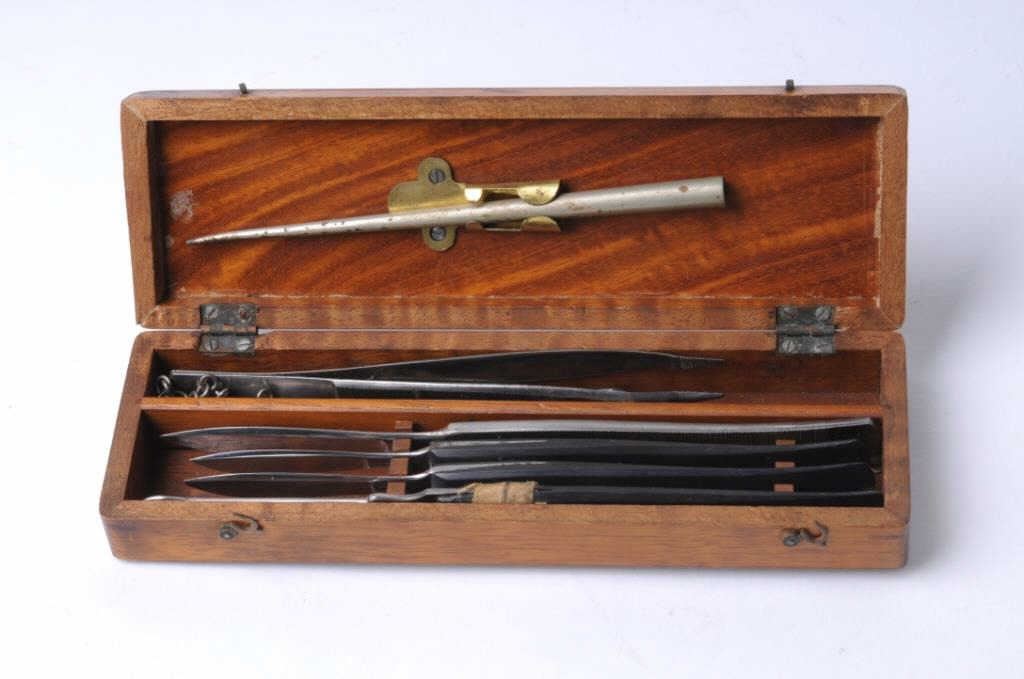 Lot 674a Cased instrument set marked “J.J. Teufe” on the blades of scalpels for possible medical purposes?