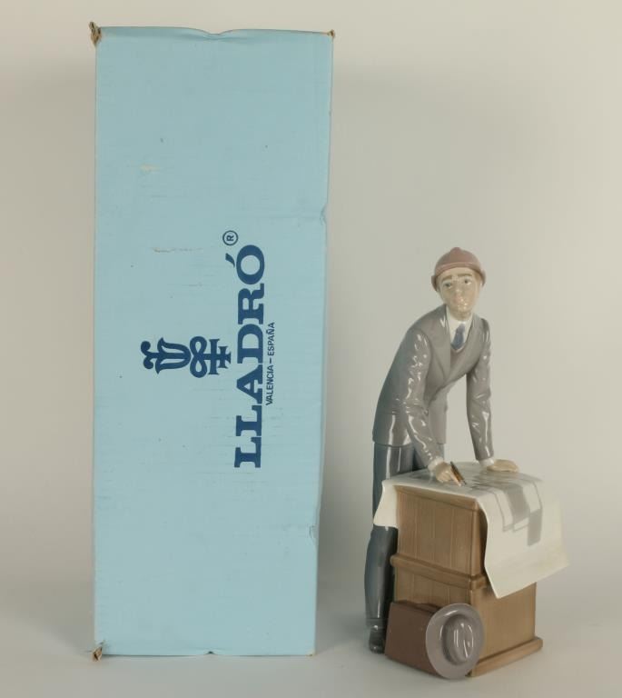 Lladro statue No. 5214, “Arquitecto” (The Architect); approximately 12” in height and in its factory cardboard shipping box. Est.: $150-$300.