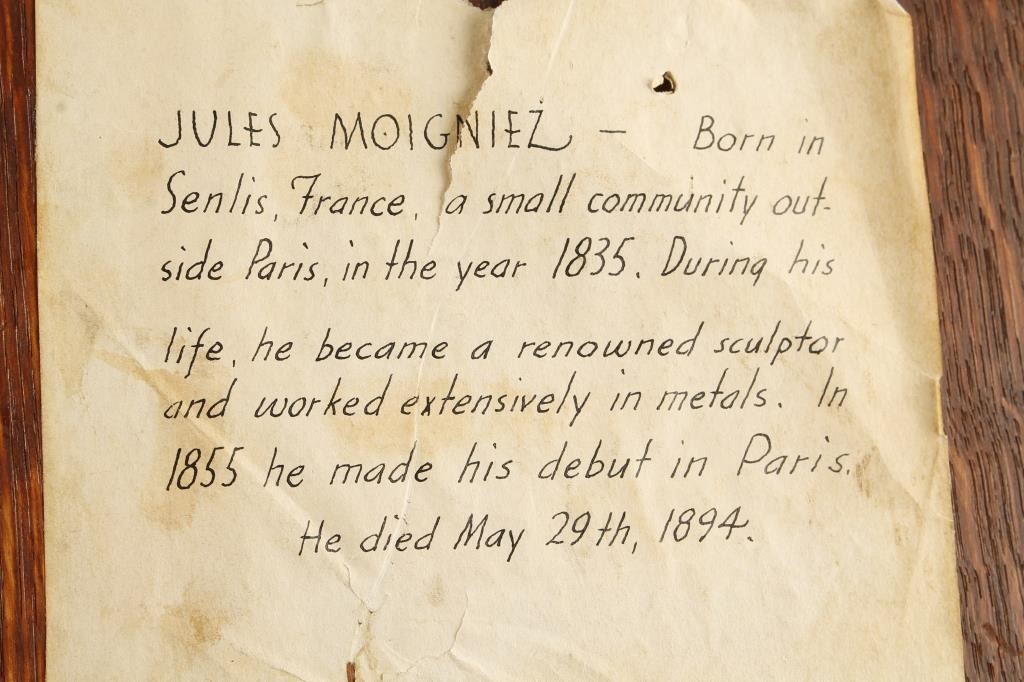 Lot 687 Pair of cast bronze game birds by L. Moigniez mounted on wood plaques, each approx. 14” x 10” over
