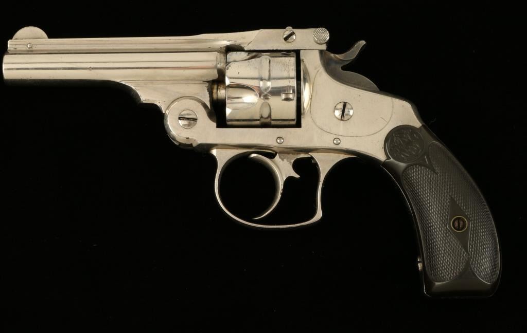 Smith & Wesson .32 DA Second Model pocket revolver, .32 caliber, 3” barrel, S/N 11361, nickel finish, checkered hard rubber grips in overall very good to fine condition displaying the majority of its original finish, very good bore,crisp action and markings, fine grips. (Antique). Est.: $250-$500.
