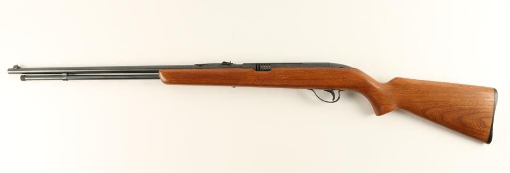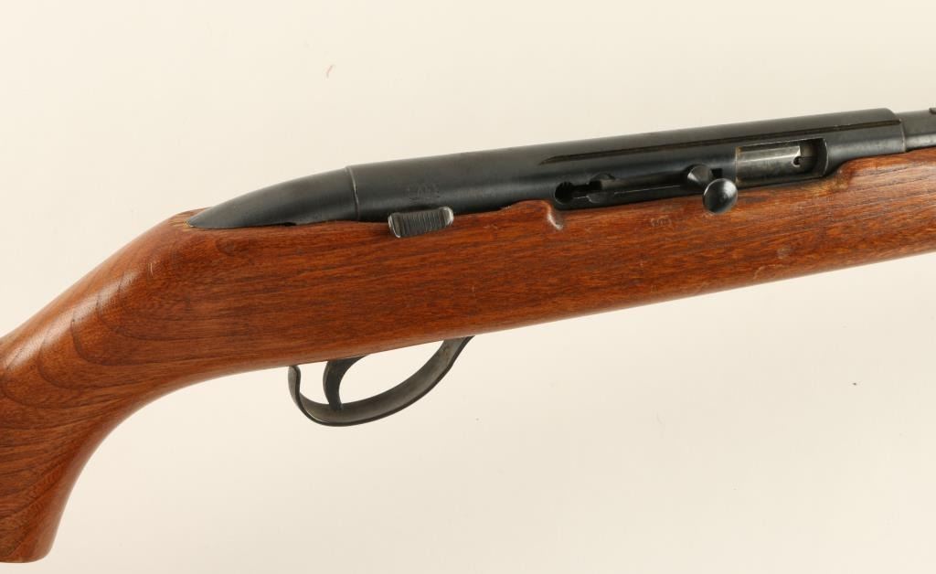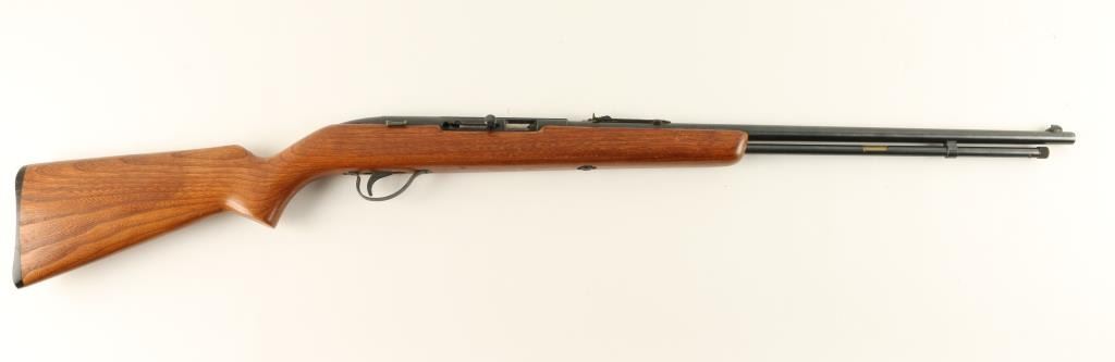 J.C. Higgins Model 25 Semi-Auto rifle, .22 L.R., 22” barrel, pistol grip wood stock, blue finish, NSNV. The rifle remains in overall very good condition with majority of its original blue remaining along with some light rust and pin prick pitting. The stock is in good condition with some dings and scratches from handle and use. The action is good and the bore is good. (Modern) Est.: $100-$200