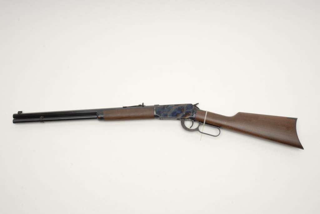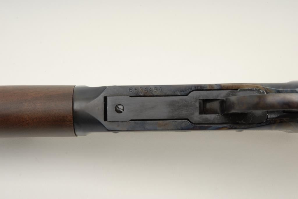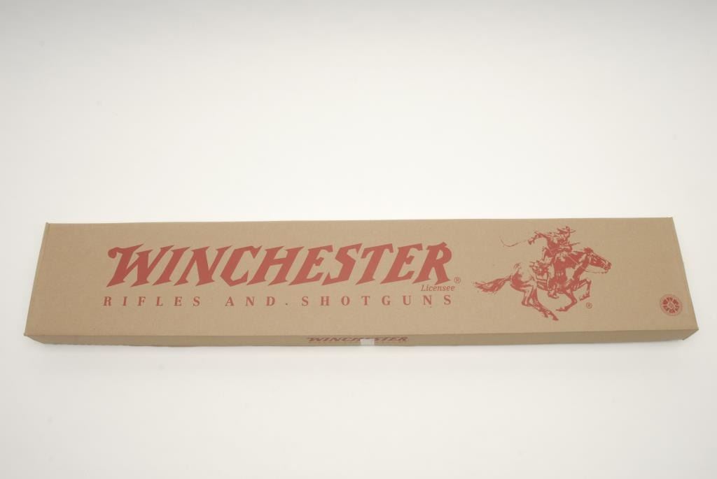 Winchester 94 Trails End Lever Action Rifle, .38-55 caliber, 20” octagon barrel, blue and case colored, walnut stock and fore end, Tang safety, crescent butt, S/N 6574496. This rifle is in like new condition showing little handling and no use.Original box and manual included. This rifle is one of the last from the New Haven, CT plant that closed in 2006. Buyer has option to buy next lot for same price. (Modern) Est.: $600-$1200