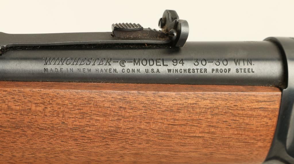 Lot 716 Winchester 94 Lever Action Rifle, .30-30 caliber, 20” barrel, walnut wood stock, blue finish, S/N