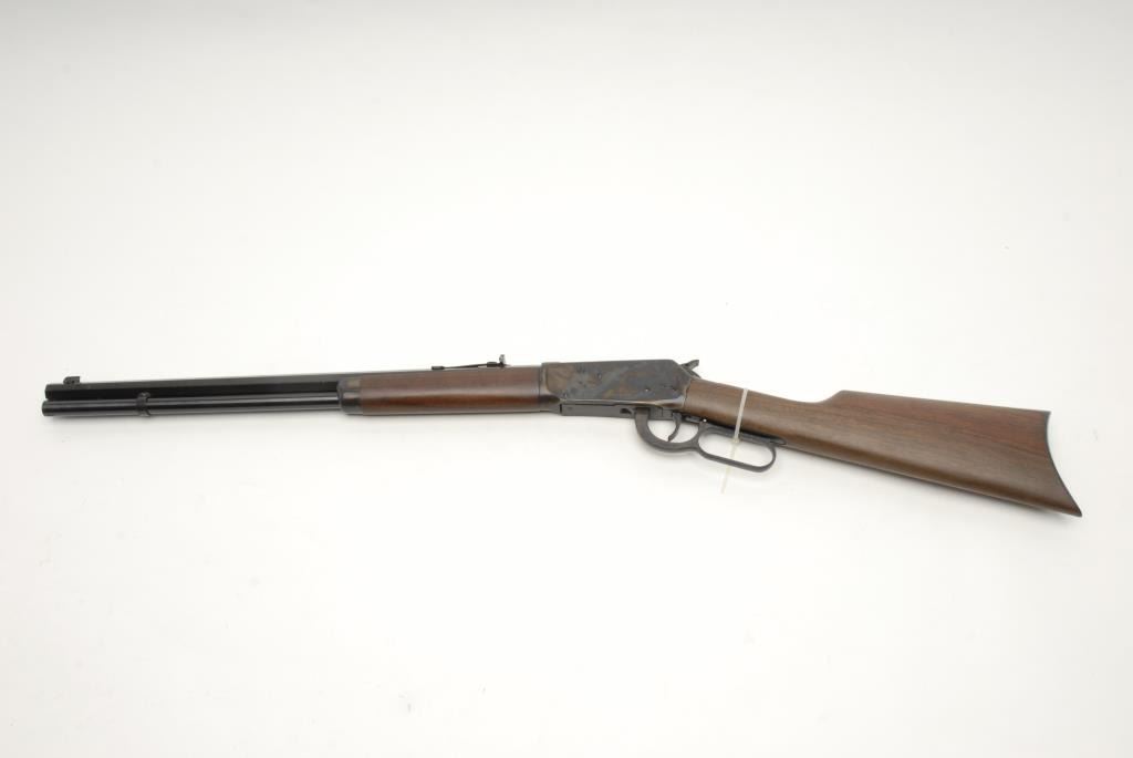 Winchester Model 94 Trails End lever action rifle, .44 Magnum cal., serial #6551052. The rifle is in as new in the box condition showing only handling and little to no use. The rifle has a 20” blued, octagon barrel and tang mounted safety. The receiver shows beautiful, dramatic case colors. The smooth wood stocks are as new with a case colored, crescent smooth metal butt plate. In the original factory box with all associated packing material. This rifle is one of a groupthat was the last rifles produced at the New Haven, CT plant that closed in 2006. Est.: $475-$950. (Modern).