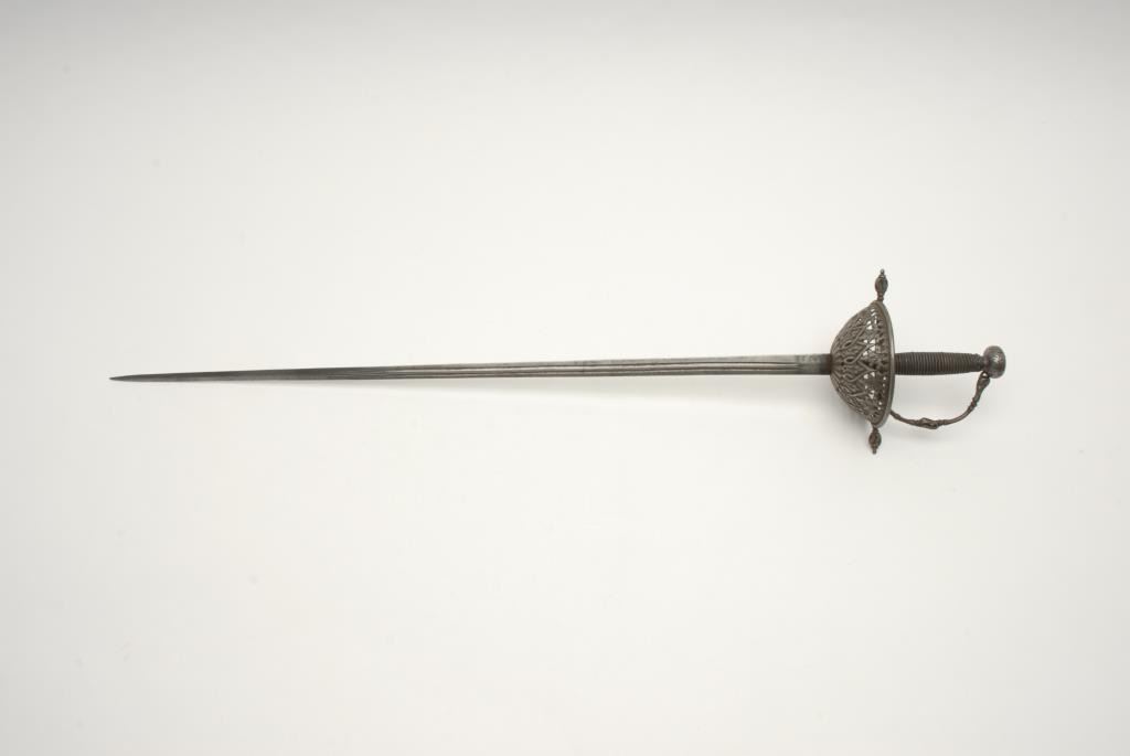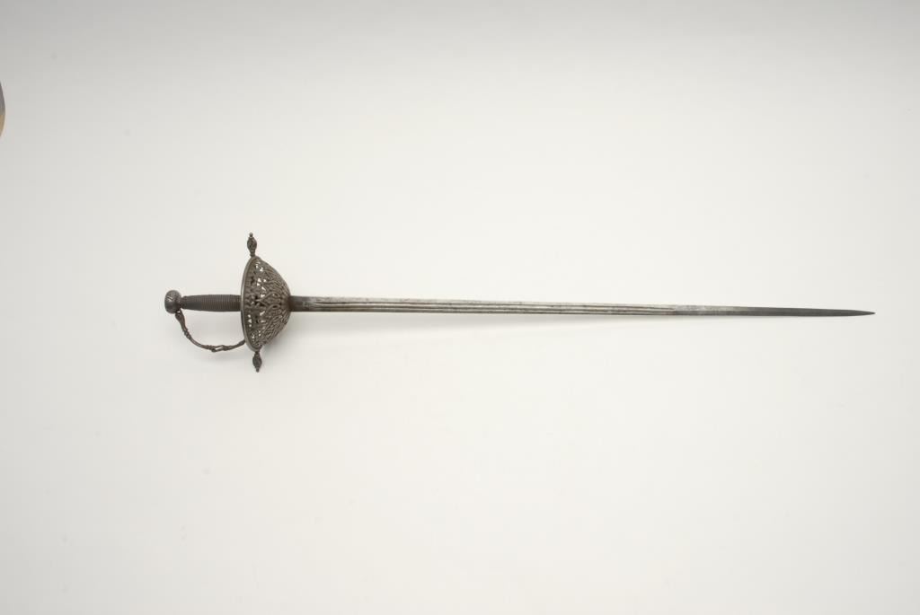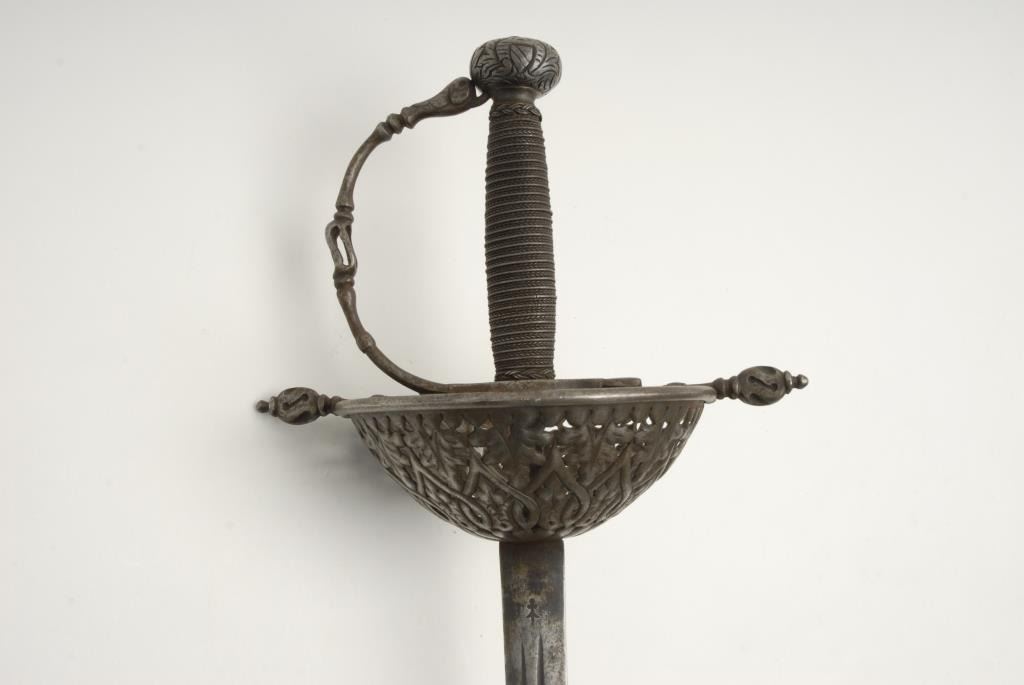 17th century style cup hilt rapier comprised of Victorian and earlier elements with nicely marked blade. Measures 42” overall with a 33” blade that was most likely 3”-6” longer when made. An attractive sword though not all period pats. Est.: $750-$1500