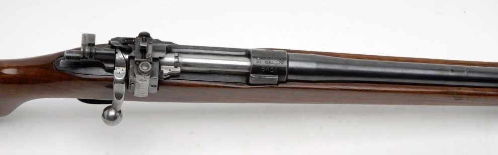 U.S. Springfield Armory Model M1 bolt action target rifle, .22 caliber, 24” round barrel with Lyman adjustable receiver mounted sight and hooded front sight, S/N 8431, commercial blue, no magazine, drilled and tapped for scope, wood stock in overall very good to fine condition with a fine bore, crisp action, sharp markings and fine wood with better-than-regular select graining pattern. (C&R/PPT). Est.: $600-$1,200.