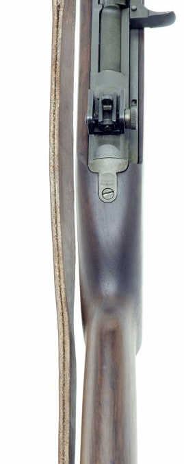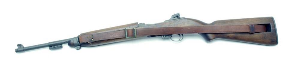 U.S. M1 semi-automatic carbine by Quality Hardware, .30 caliber, 18” Rock-Ola barrel, S/N 4639321, military finish, flat bolt, no magazine, leather sling, wood stock, bayonet lug, in overall very good condition as rebuilt; crisp action,sharp markings, very good to fine bore; no visible inspector cartouches on very good + wood stock. (C&R/PPT). Est.: $600-$1,200.