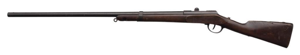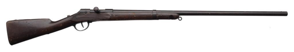 Shortened flintlock musket, .70 caliber, 27” barrel, two barrel bands and full length wood stock; no visible markings on lock plate; in overall good “out-of-the-attic” condition showing a heavy brown patina on metal surfaces, goodaction and good wood. Est.: $800-$1,600.