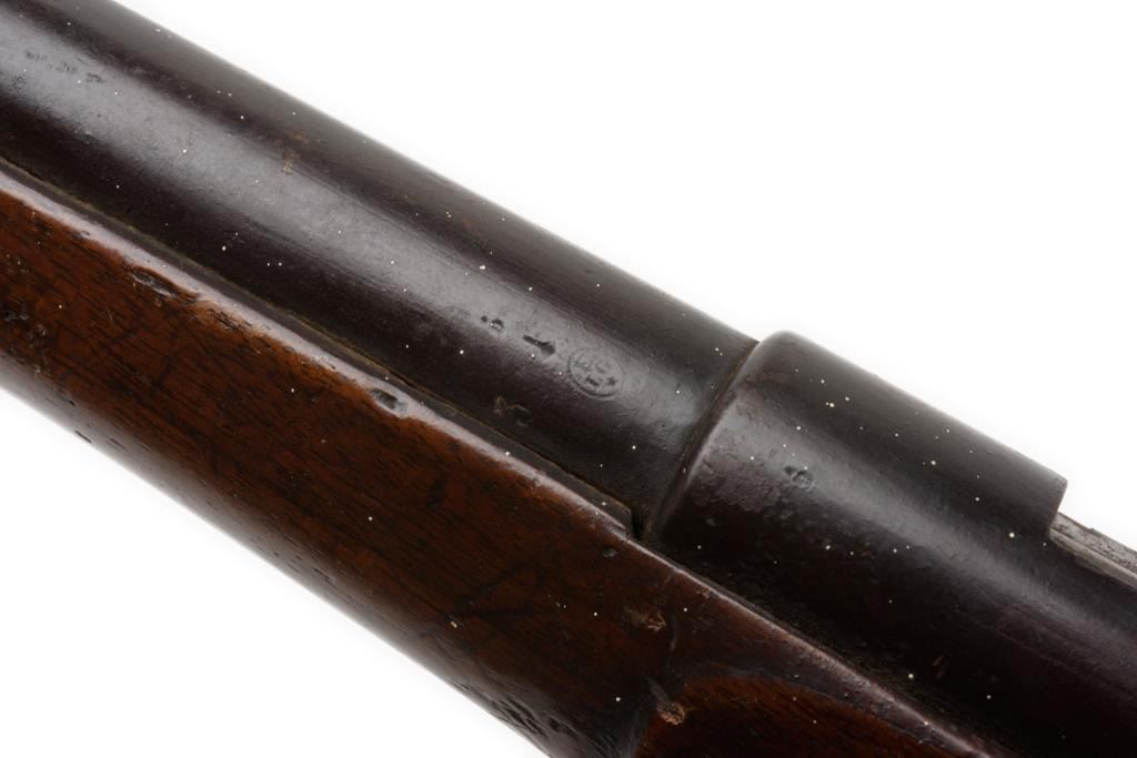 Lot 759a Shortened flintlock musket, .70 caliber, 27” barrel, two barrel bands and full length wood stock;