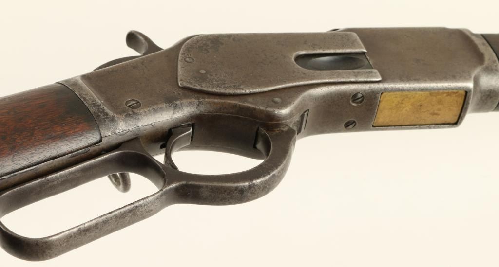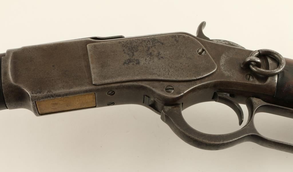 Winchester Model 1973 lever action rifle, .38 caliber, 24” octagon barrel, S/N 270844B in overall good condition showing a brown patina with some areas of blue on the receiver; good action and markings; good bore; overall good wood showing an old re-finish. (Antique). Est.: $800-$1,600.