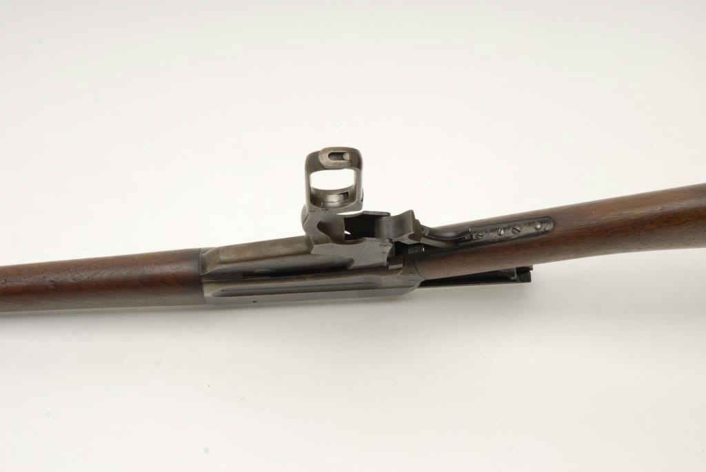 Winchester Model 1895 lever action rifle, .35 W.C.F. caliber, 24” round barrel, S/N 58849, in overall good to very good condition showing scattered areas of original muted blue, very good bore, crisp action, very good markings and good to very good wood with an after-market hard rubber butt pad added; adjustable Lyman receiver mounted rear sight. (C&R). Est.: $600-$1,200.