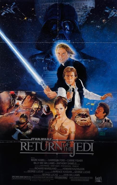 Very rare Star Wars collectible large original color advertising sheets (2), each approximately 41” x 27” and both in very good to fine condition; one is the released ad design for “Return of the Jedi”; the other is titled “Revenge of the Jedi”, the latter of which was made up before the movie was re-named to “Return of the Jedi”. The early version is not easily found by collectors as most of these sheets were destroyed before distribution when the title of the film was changed. Est.: $1,000-$2,000.