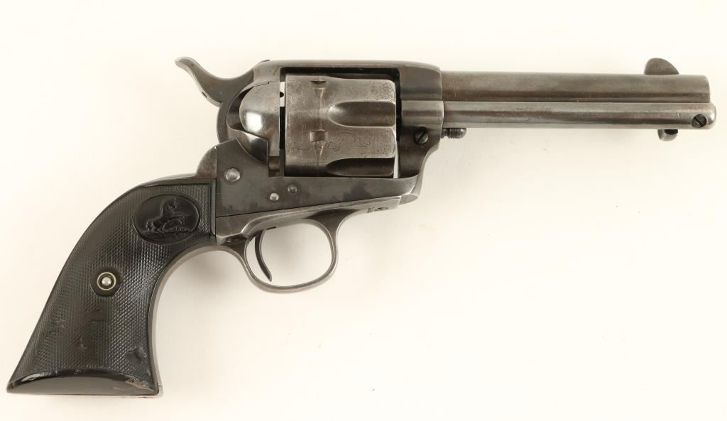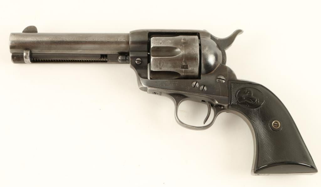 Lot 789 Colt SAA revolver, .44-40 caliber, 4.75” barrel, S/N 182850, blued finish, checkered hard rubber g