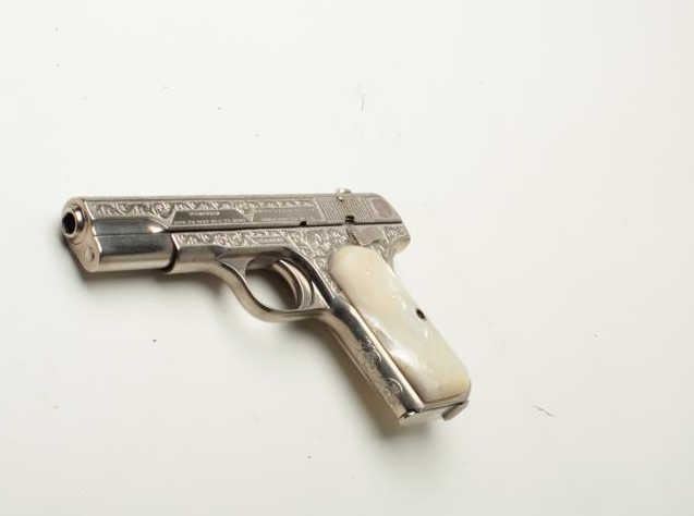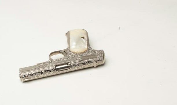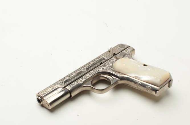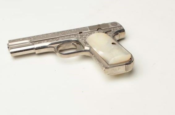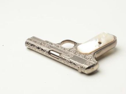 Lot 789a Custom engraved Colt Model 1903 pocket semi-automatic pistol, .32 caliber, 3.75” barrel, re-nickel