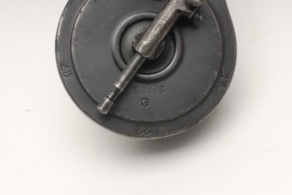 Luger semi-automatic pistol “snail” drum (drum only; no gun), (NO CALIF. SALE/TO BE SHIPPED FROM ARIZONA); S/N 52286, WW II era, blued finish, overall good condition. Est.: $1,500-$2,000.