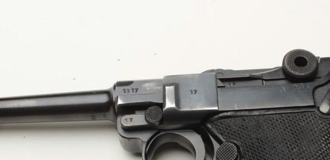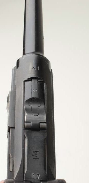 Lot 810a Desirable Mauser (byf) P-08 “Black Widow” semi-automatic pistol, 9mm caliber, 4” barrel, S/N 1017a