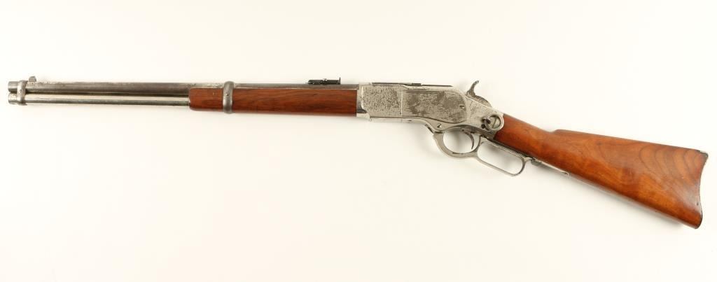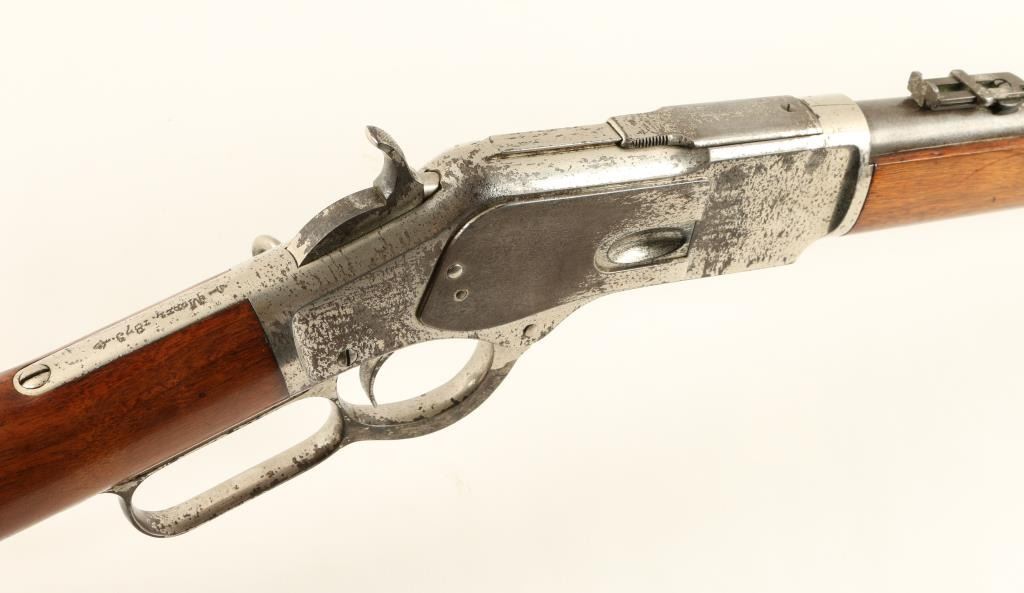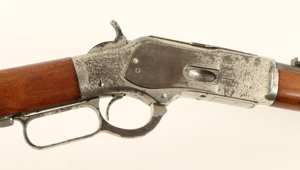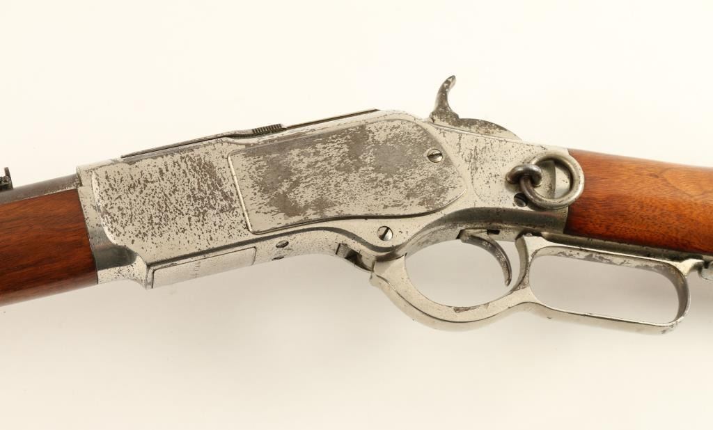 Lot 827 Winchester Model 1873 lever action SRC, .44 WCF caliber, 20” round barrel, S/N 494355B, nickel fin