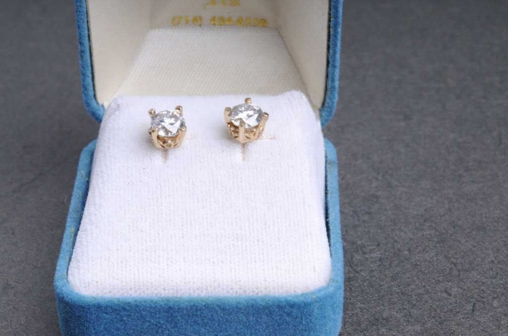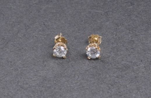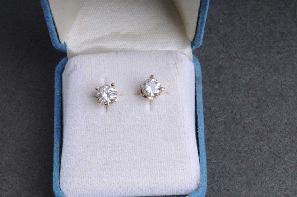 Lot 831 One pair of diamond studs in 14k yellow gold. Two diamonds weigh approx 1.5ct and are color H cla