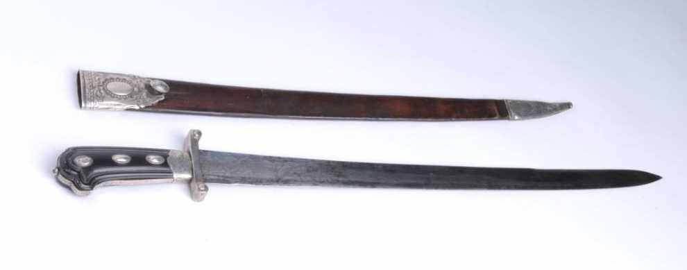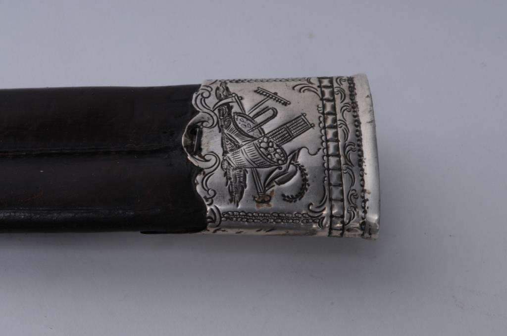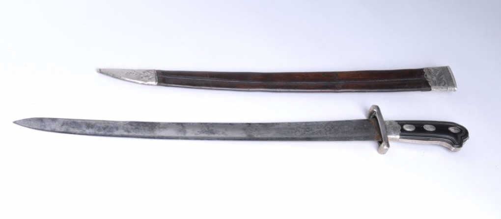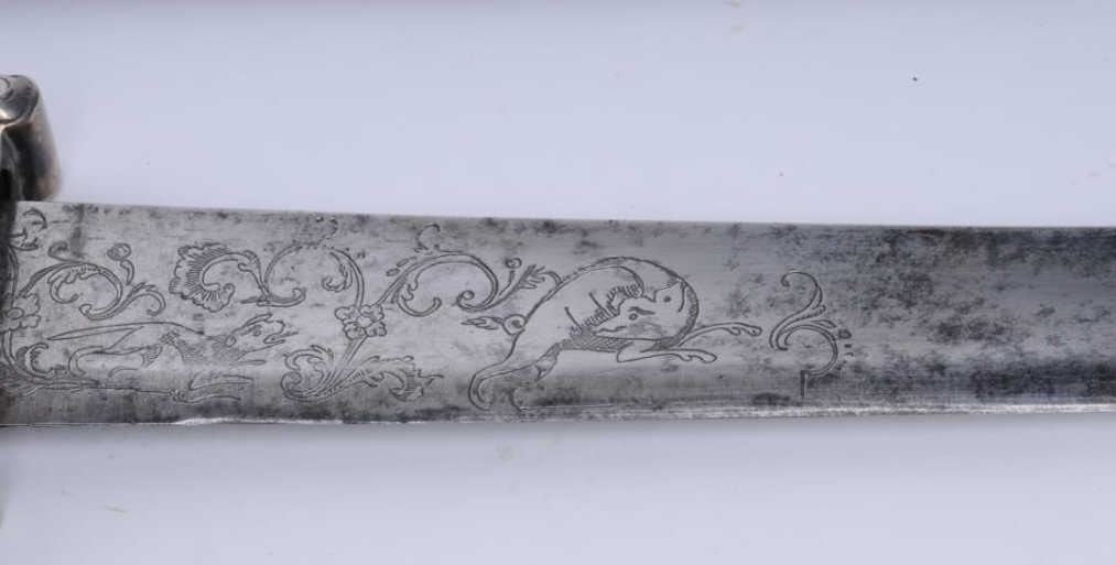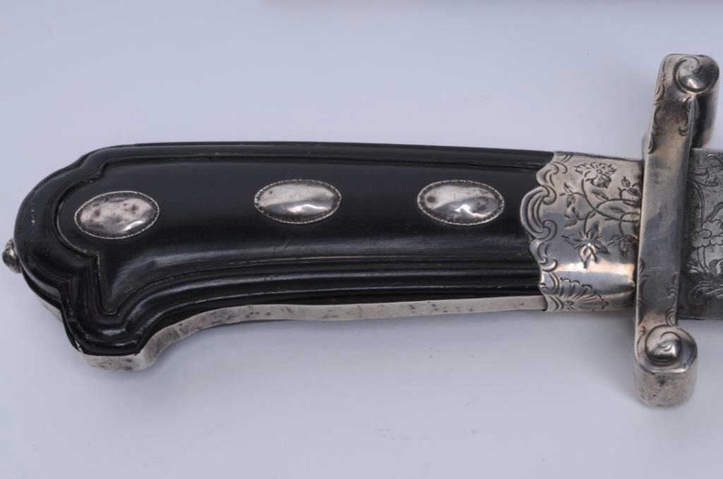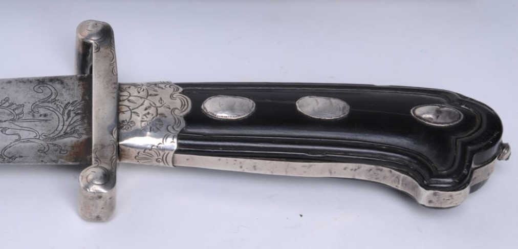 Lot 846 18th century royal quality French hunting sword with silver mounts, carved ebony grips, and almost