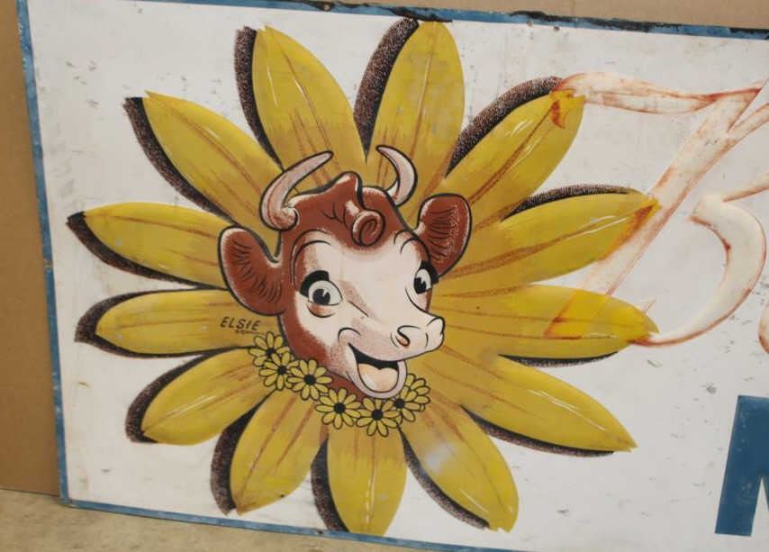 Lot 864 Massive painted metal sign advertising Borden’s Milk with “Elsie” the cow mascot; approximately 29