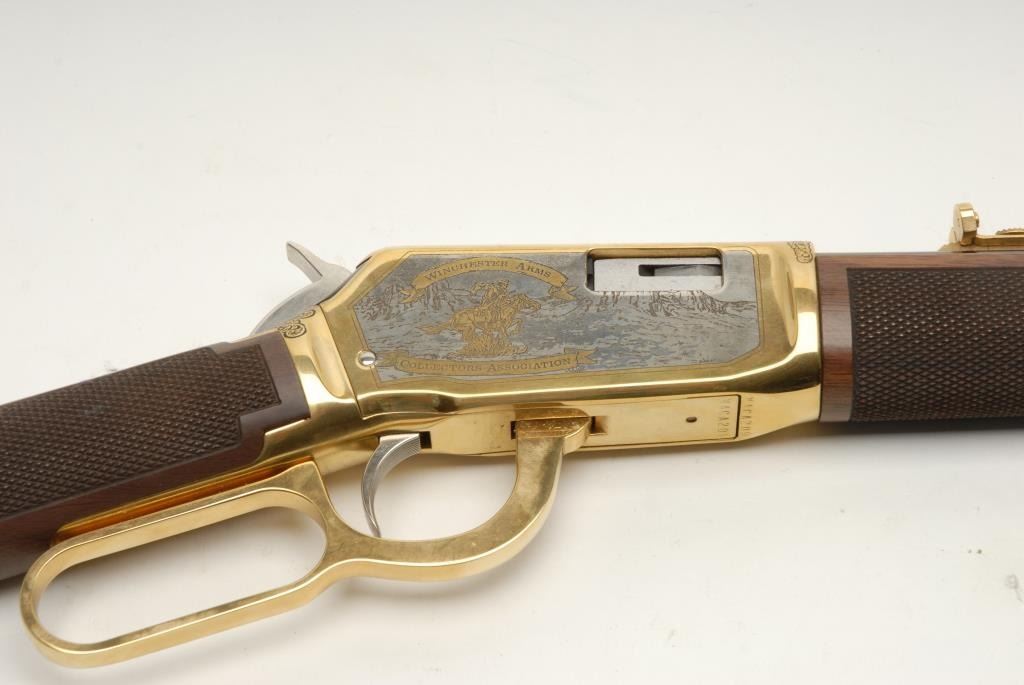 Winchester Arms Collectors Association 9422 lever action rifle in .22 caliber rimfire with a 16 ½” barrel, S/N WACA209 in series. Mint in box with fancy stocks and gold embellishments. See lot 841 for consecutive serial number. (C&R) Est.:$1750-$3500