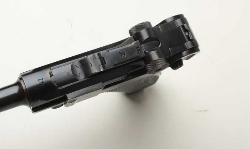 Lot 881a Desirable Mauser (byf) P-08 “Black Widow” semi-automatic pistol, 9mm caliber, 4” barrel, S/N 2472l