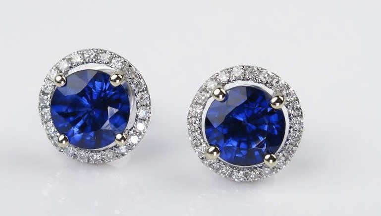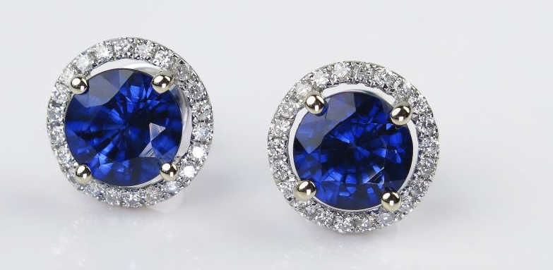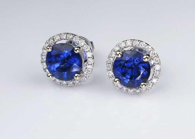 Lot 886b Exceptional ladies earrings set with two round Fine Ceylon color Sapphires weighing 5.17 carats an
