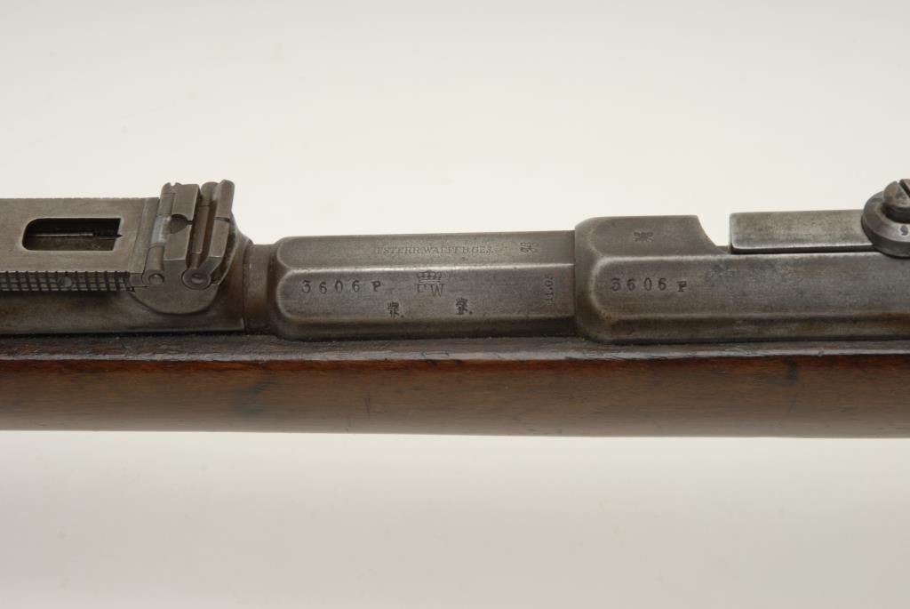 Lot 912 German Model 71 bolt action rifle in 11mm marked “Osterwaffeb. S” and “P.W.” proofs, S/N 3606P. Ma